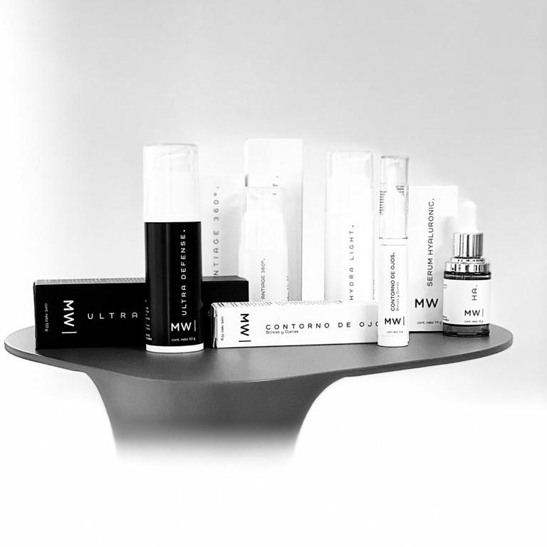 Nuestra línea MW está compuesta por trece productos pensados para armar una rutina completa e integral: limpieza, scrub, serum, cremas para el día y para la noche, contorno de ojos, crema para manchas y protección solar.